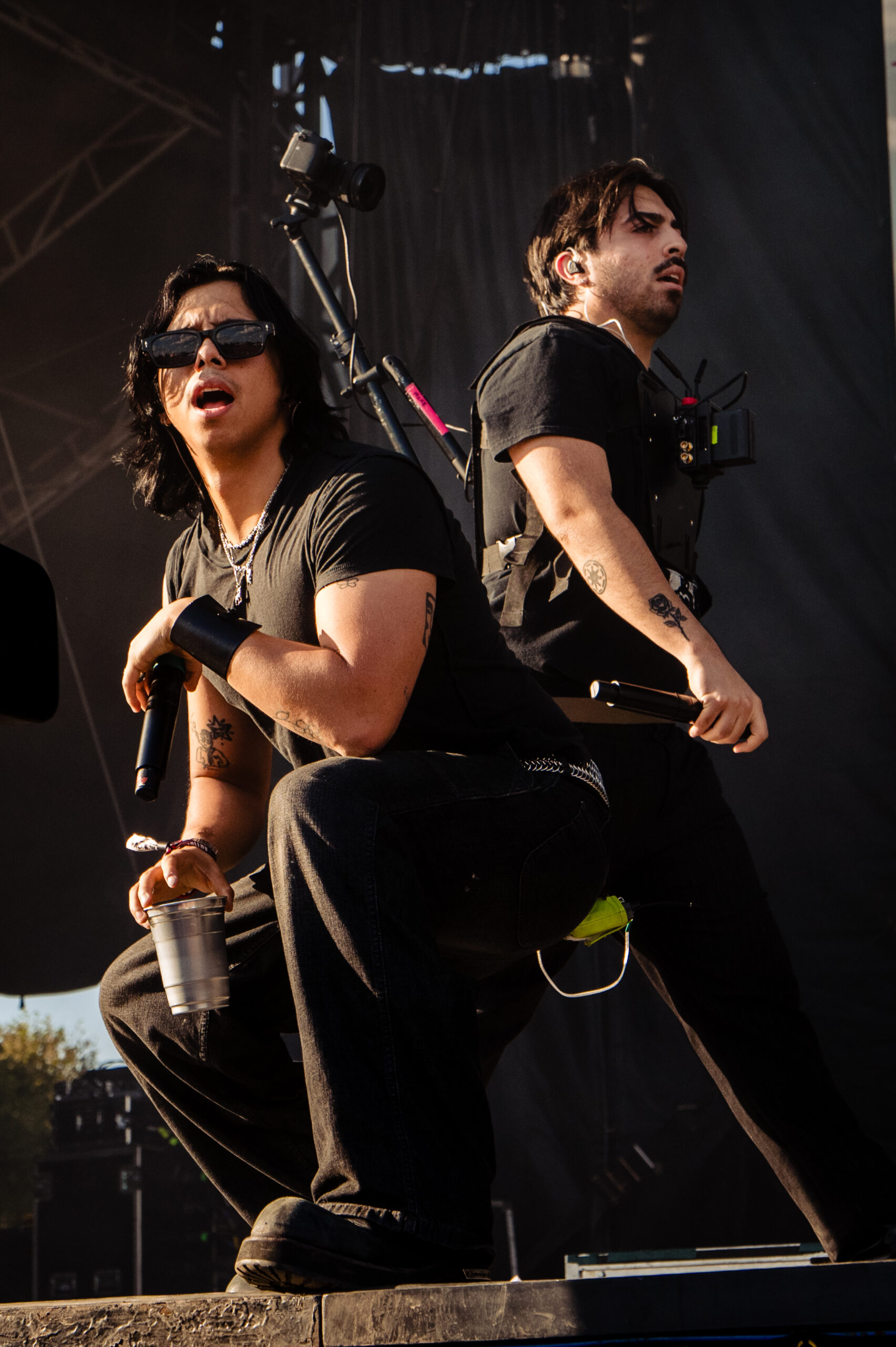 Latin Mafia no es un acto convencional: su sonido mezcla reguetón, trap, R&B, indie y electrónica con una naturalidad sorprendente. Desde los primeros pantallazos con el sistema de video nuevo, quedó claro que la dupla vocal de los gemelos Milton y Emilio, respaldada por la producción visionaria de Mike, buscaba conectar de inmediato con los miles de fanáticos que esperaron con ansias bajo el intenso sol de Austin por su irreverente show!