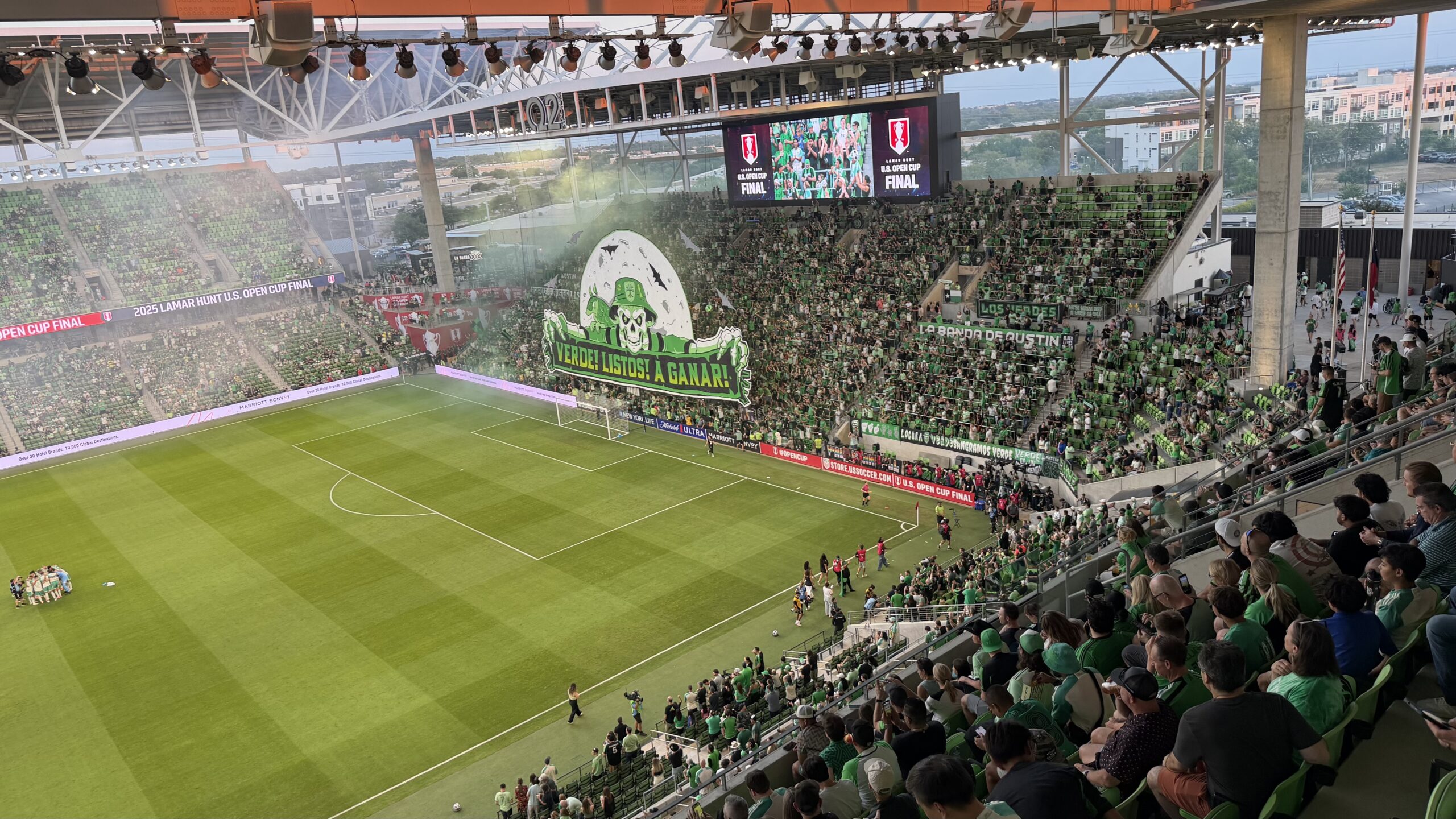 En este caso, han formado parte en muchos partidos del verde y negro, recordando varios icónicos, como el hecho por nuestro amigo Luis Angulo, y en este caso de la final de la US Open Cup no ha sido la excepción y tras un largo trabajo de más de dos semanas, decenas de voluntarios y horas de trabajo, el artista Argentino Octavio Sosa plasmo precisamente este sentimiento de comunidad en una gigantesca lona que cubrió casi en su totalidad la gran sur del Q2 Stadium y con un perfecto simbolismo mostro este sentimiento con una gran calabera hicha con sombrero del austin FC, Los icónicos murcielagos de Austin y una gran pañoleta con la frase «Verdes Listos! A Ganar!.